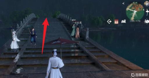 在杭州,玩家进入剧情后,移动角色走到杭州坐标(1165,1179)桥的对面。走到桥对面后,然后左转,找到白衣女子。在坐标(1109,1253)找到白衣女...