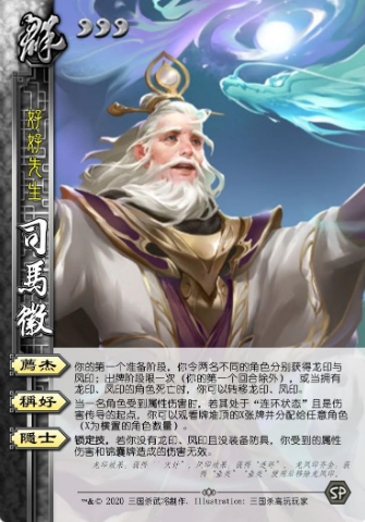 手杀给他的定位也是在他们俩之上,跟神曹操、灵雎在一档,参与度极高、贡献度极高、嘲讽极高、游戏体验极棒、爆发能力极高、性价比极高,如果有机会入手他,绝对第一选择就是他。