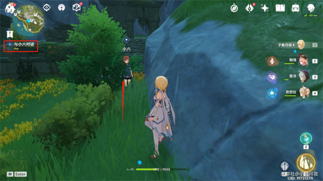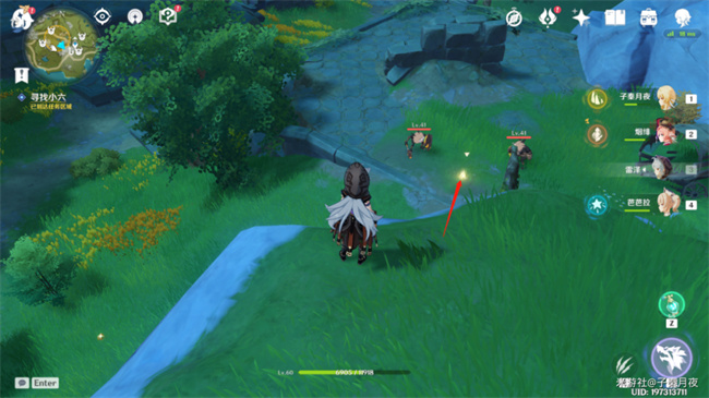 然后就是找小六对话了,小六就躲在这个草堆里面,是不是很不好找。