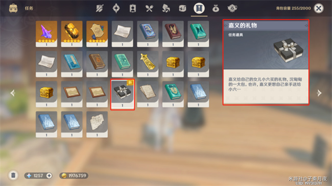2、嘉义的礼物就会放在背包中,可以打开背包查看下。