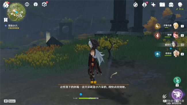 1-2:派蒙:这些落下的树莓...说不定就是小六采的,得快点找到她。