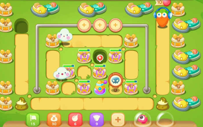 这关属于游乐场比较难过的关卡之一了,场景中的障碍物过多,要想达到全清获取金萝卜我们必须要用到宠物技能以及萝卜的皮肤技能才行。这关炮塔推荐毒瓶、便便、飞镖、炮瓶和太阳,主...