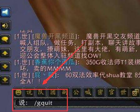 2.或者在对话框中输入/gquit指令,然后使用回车键退出公会。