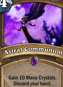 这是一张百搭牌,使用这张牌最好的方式就是用苦痛寺僧或者战利品储藏者这样的过牌,然后再使用星界沟通再找到你的最需要的牌。如果这样下需要花费很大的勇气,而且不是很稳定,小编觉得,星界沟通这张卡需要放在一套全是大随从的套牌里试一下,因为这样会显得很有趣,但是在高端对局中想要出现就比较难了。那么如果你想要获得这张卡牌,则可以通过“冠军的试炼”扩展包中获得,也可以用奥术之尘来合成它。